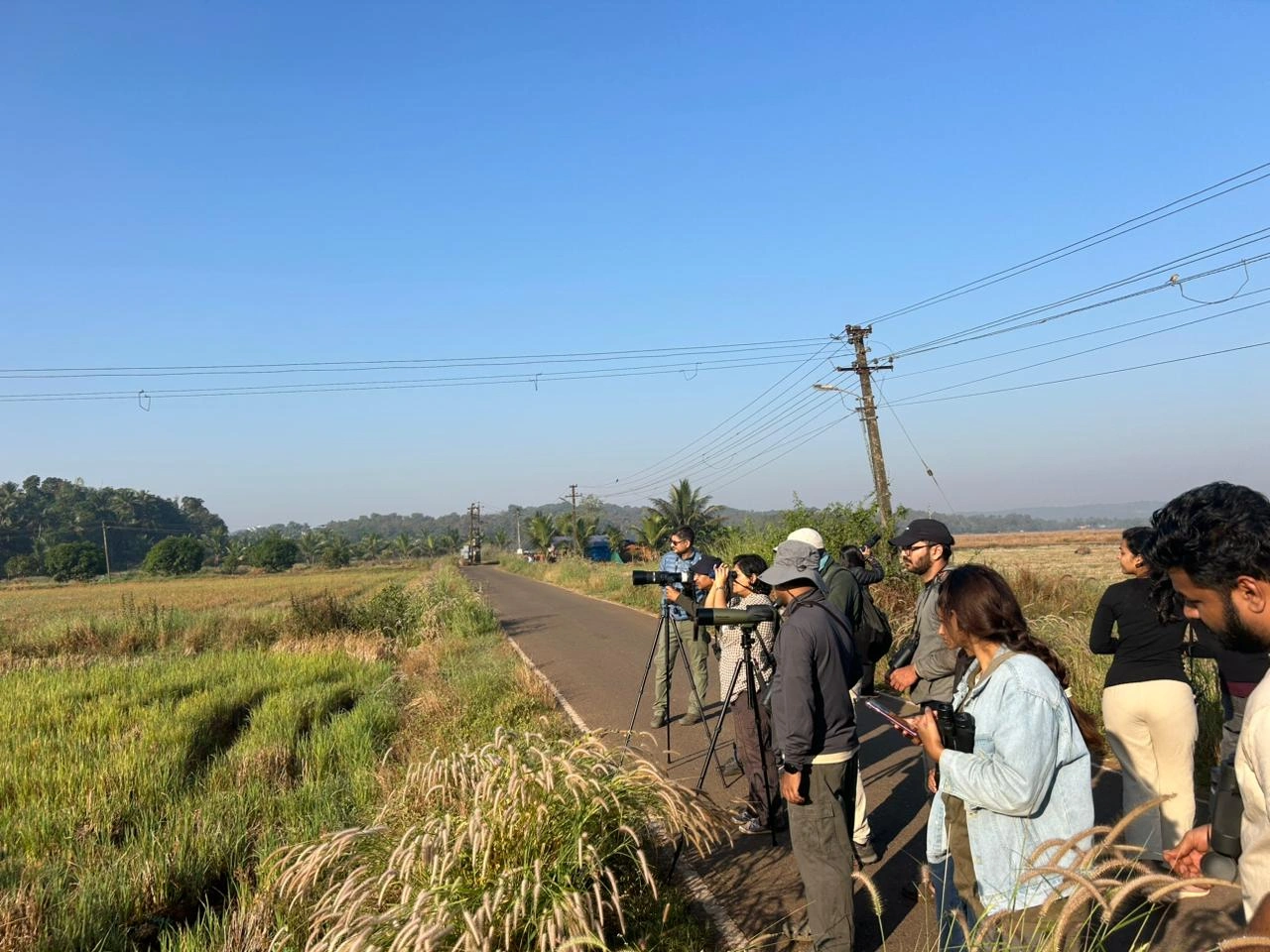 The bird walk at Diwar Island, Goa, led by Jalmesh Karapurkar, was attended by 15 participants and began on a lively note with a chorus of calls from the Malabar Whistling Thrush, Nilgiri Flowerpecker, and Green Warbler. As the walk progressed, cormorants and egrets were seen flying overhead, leaving their roosts and heading toward feeding grounds. Moving through the tranquil island landscape, participants experienced a seamless transition of habitats—from mangroves to open fields—each supporting a rich diversity of birdlife and activity.