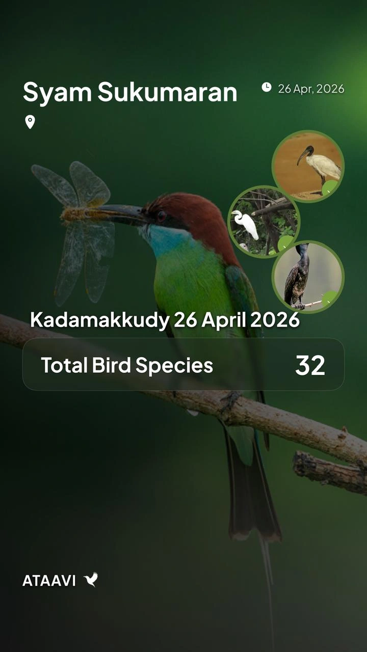 The walk at Kadamakkudy had 19 participants, including a mix of beginners and experienced birders, which created a balanced and collaborative learning environment. The presence of seasoned birders helped enrich discussions and supported smoother identification and observation.
