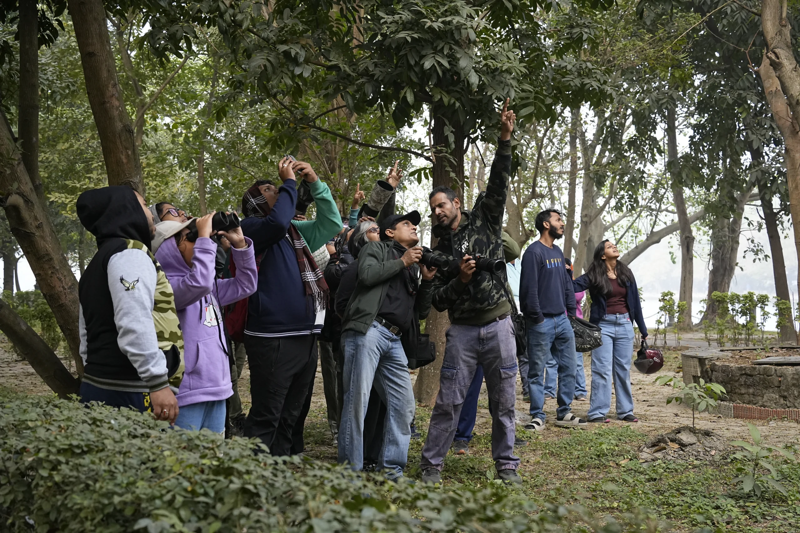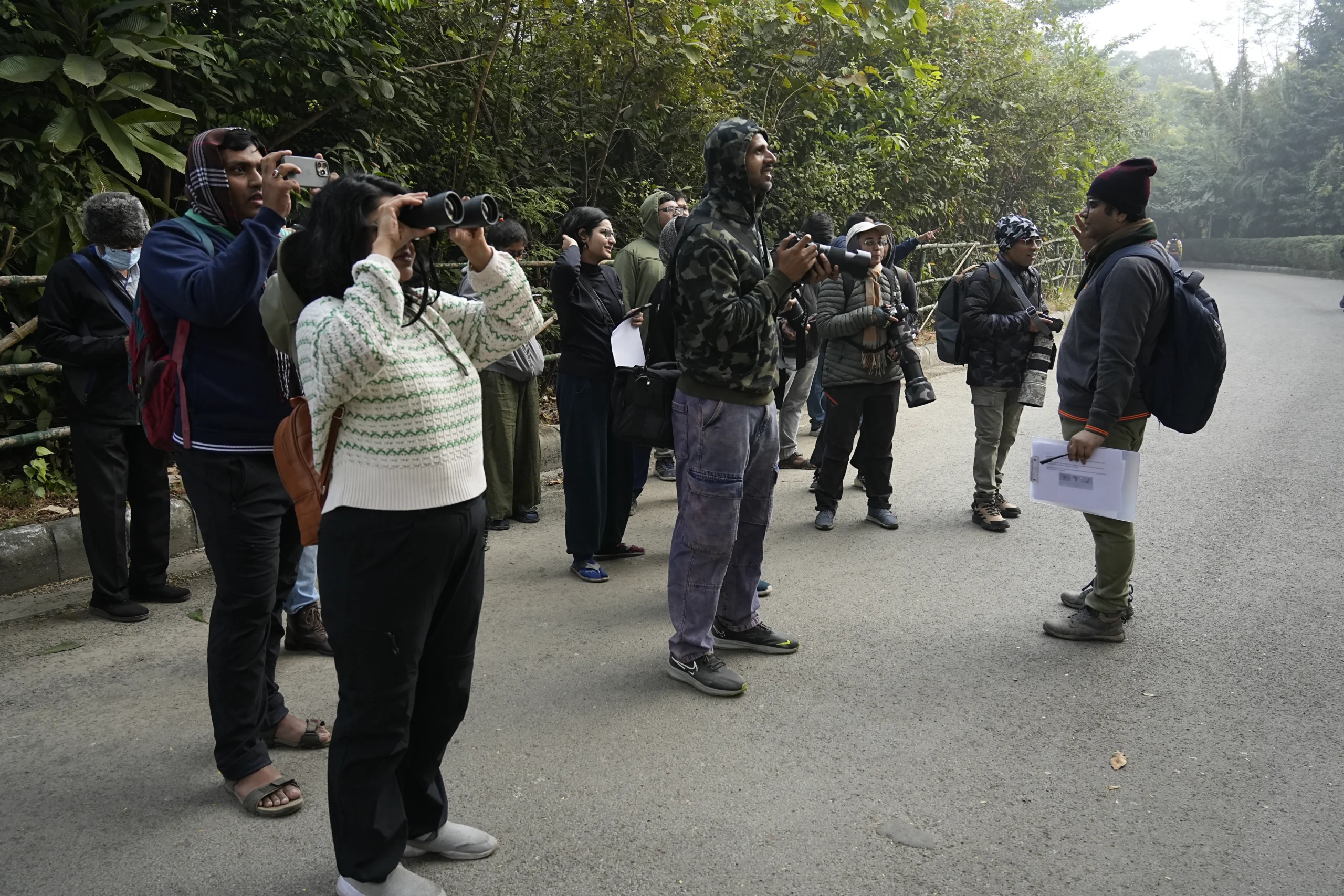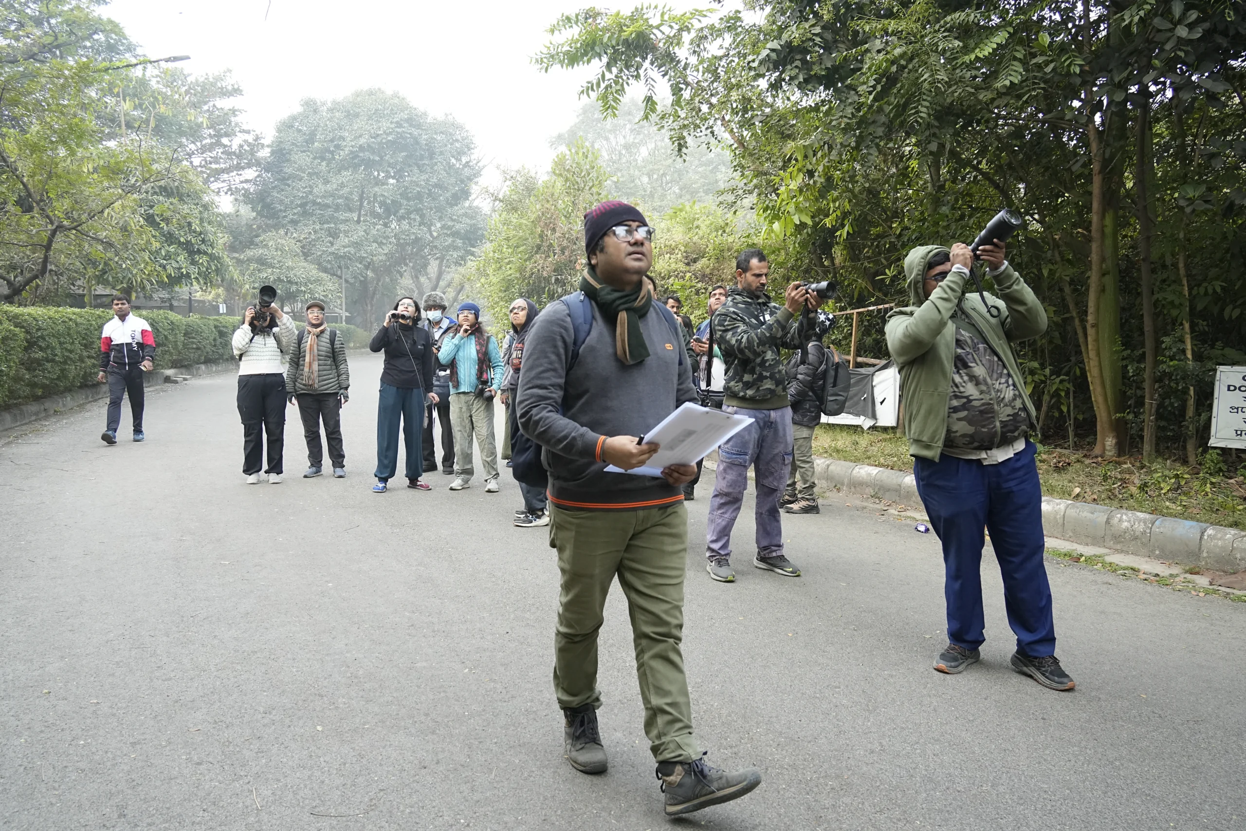 The bird walk organized at Rabindra Sarobar, Kolkata, West Bengal, was led by local bird guide Sounak Dutta along with his team, and was attended by 17 participants, including one child. Although the morning was cloudy and chilly, the enthusiasm among participants was high. The walk began with brief introductions, during which Sounak spoke about the Ataavi Foundation and introduced a newly launched app by the organization. An excellent and unexpected early highlight was the sighting of an Orange-breasted Green Pigeon perched among a flock of Yellow-footed Green Pigeons.