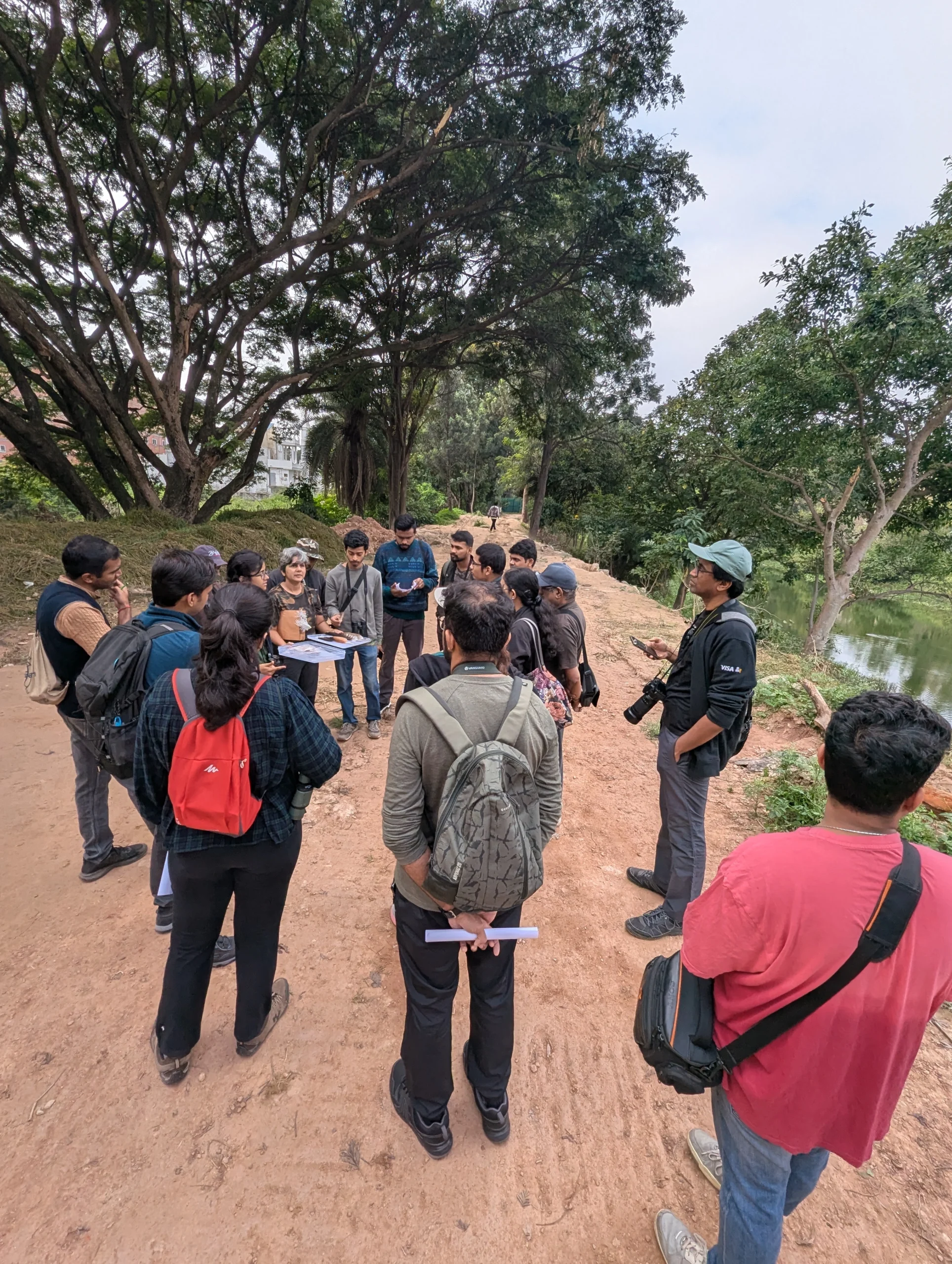 The Doddenakundi Kere Bird Walk in Bengaluru, led by Manasvi and her parents, attracted 21 participants for a lively and informative morning session. The event coincided with Dr. Salim Ali’s birthday/National Bird Day, and the guide shared insights about the legendary ornithologist’s contributions and the importance of birds in maintaining ecological balance. The session included a hands-on demonstration using feathers from a peafowl, where participants learned to distinguish between tail, flight, and contour feathers, making the experience both educational and interactive.